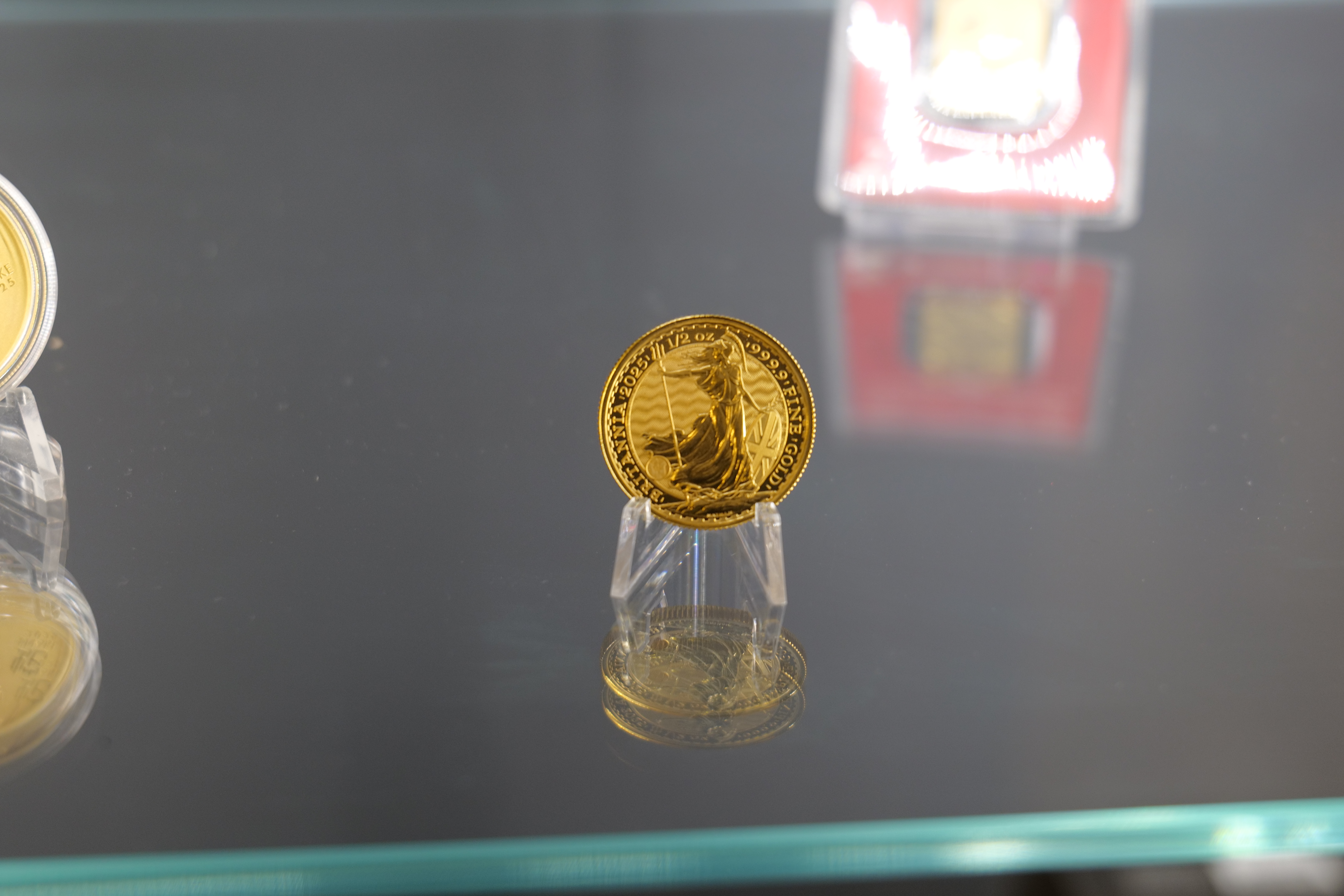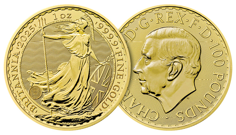 Zlatou investiční minci Britannia razí Britská královská mincovna The Royal Mint již od roku 1987. Od roku 2013 se vyrábí v ryzosti 24karátového zlata (999,9/1000) technologií pikosekundového laseru, jež vytváří iluzi pohybu při natáčení mince.