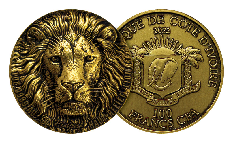 Není se asi čemu divit, že první mincí ze série “Big Five” byl král všech zvířat, tedy lev. Uncová zlatá mince byla vyražena v roce 2020 technologií vysokého reliéfu, který vytváří líbivý 3D efekt, a v populárním starodávném provedení “antique”.
