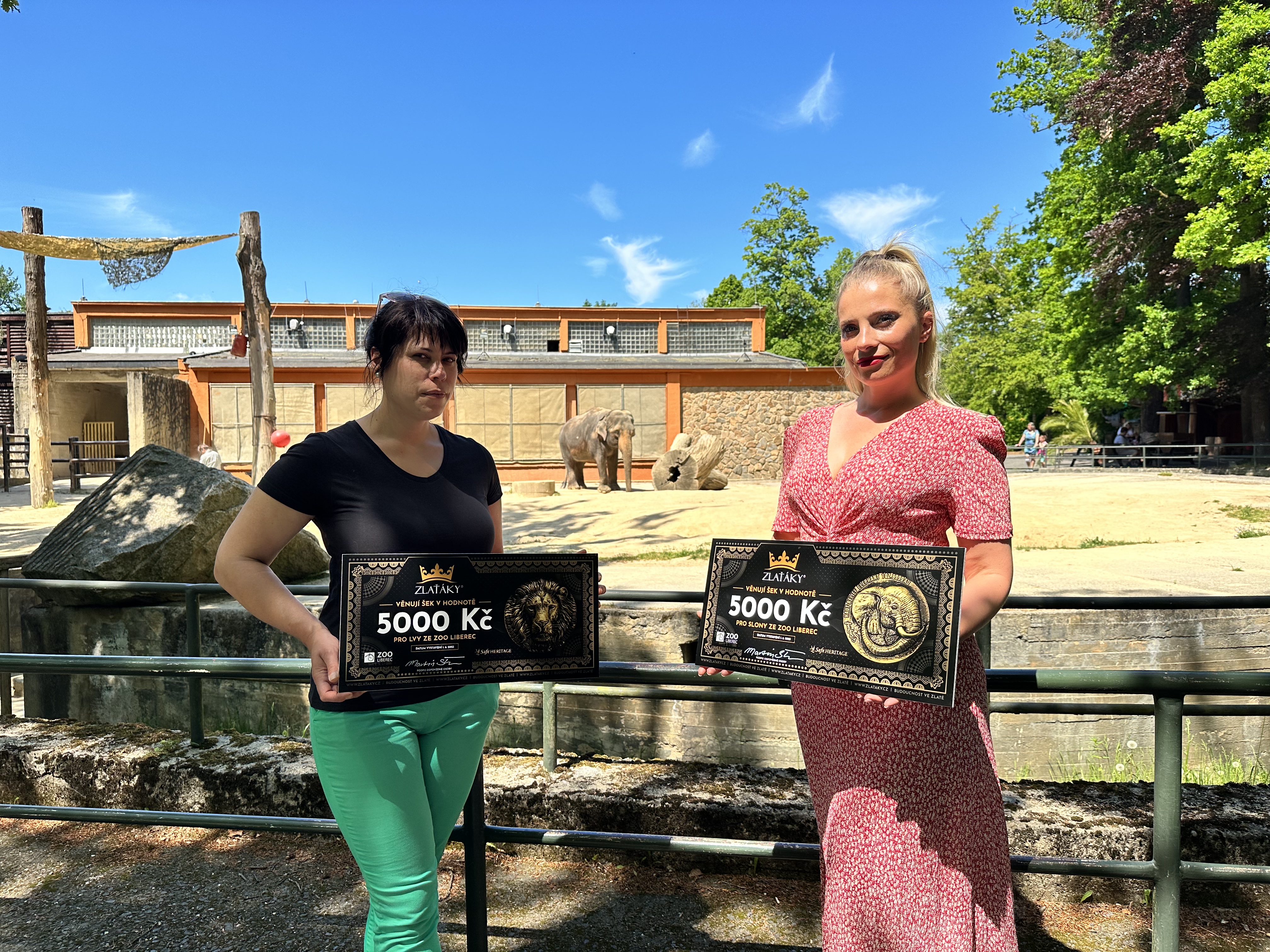 V rámci výstavy se společnost Zlaťáky.cz rozhodla podpořit slony a lvy, tedy zvířata v Zoo Liberec, které se řadí do africké pětky, a to částkou v hodnotě 10 tisíc Kč. “Spočítali jsme si, že slonům by to mělo pokrýt zhruba týdenní náklady na potravu a lvům 9ti denní náklady hlavně na maso, jehož ročně sní v částce okolo 200 tisíc Kč,” říká Martin Štich, ředitel společnosti Zlaťáky.cz, která v rámci svých aktivit pomáhá tam, kde je to třeba.