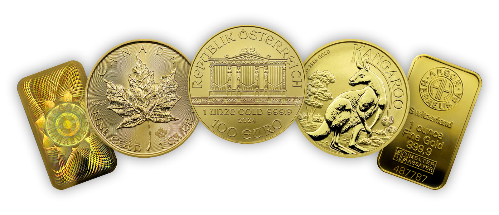 V nabídce naleznete také zlaté švýcarské slitky různých gramáží Argor-Heraeus SA a Argor-Heraeus SA Kinebar, odpovídající londýnskému standardu Good Delivery (LBMA) díky kterému jsou bez problémů akceptovány na všech trzích. Kinebary nesou na své zadní straně logo výrobce Argor Heraeus provedené laserem speciální holografickou technikou Kinebar®. Přední strana slitku označuje výrobce, čistou váhu v gramech, své identifikační číslo a logo slévárny Argor Heraeus.